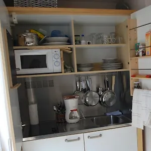 Los huéspedes pueden preparar sus propias comidas en la pequeña cocina de este establecimiento.